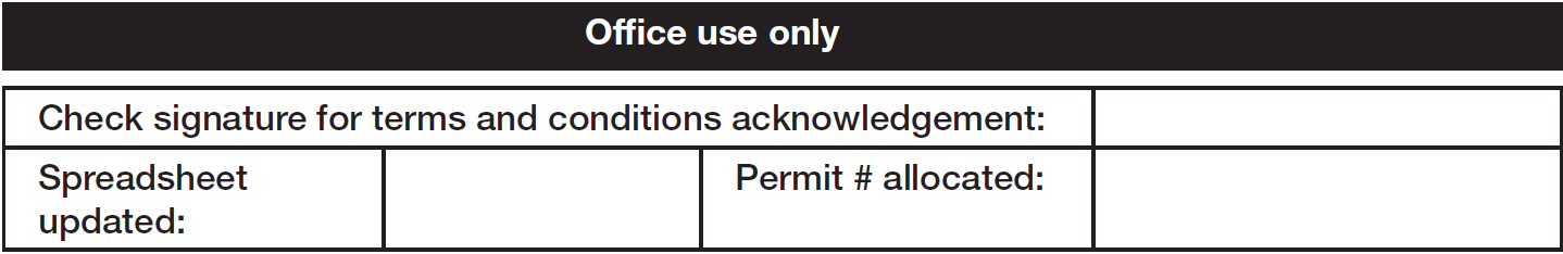 Restricted parking exemptions only apply with the display of a valid parking permit, which can be collected from the CPEC Office. Fines may apply if permits are not clearly visible. All participants must complete and sign this form prior to receiving a parking permit as acknowledgement of having read and understood the terms and conditions.